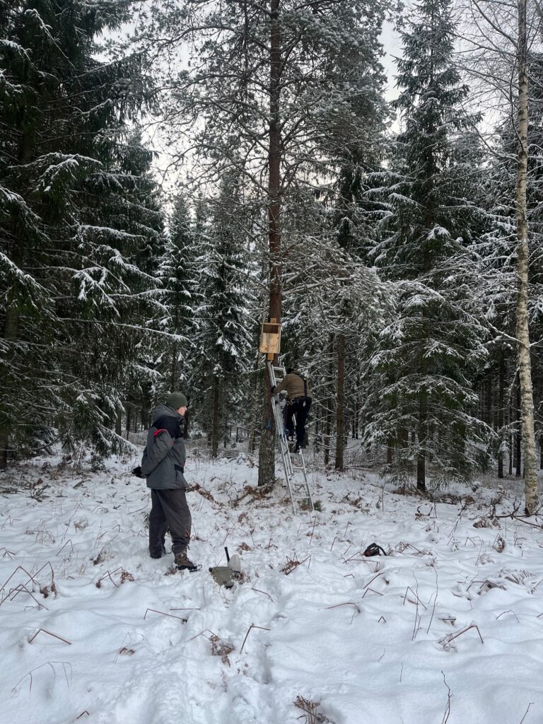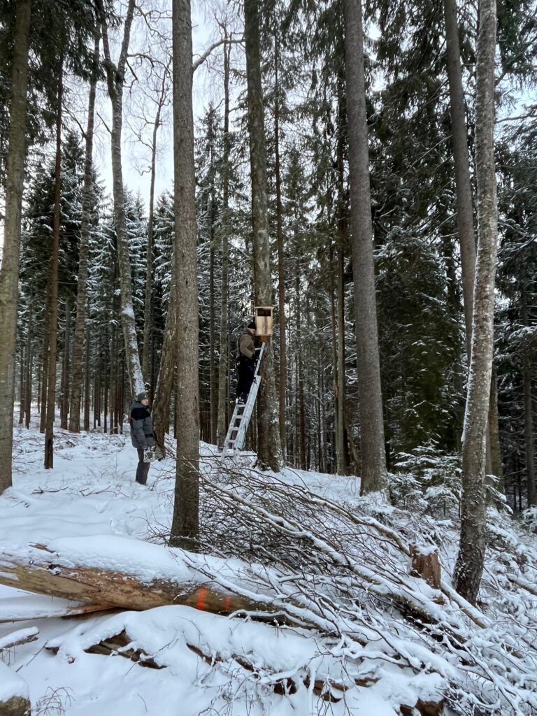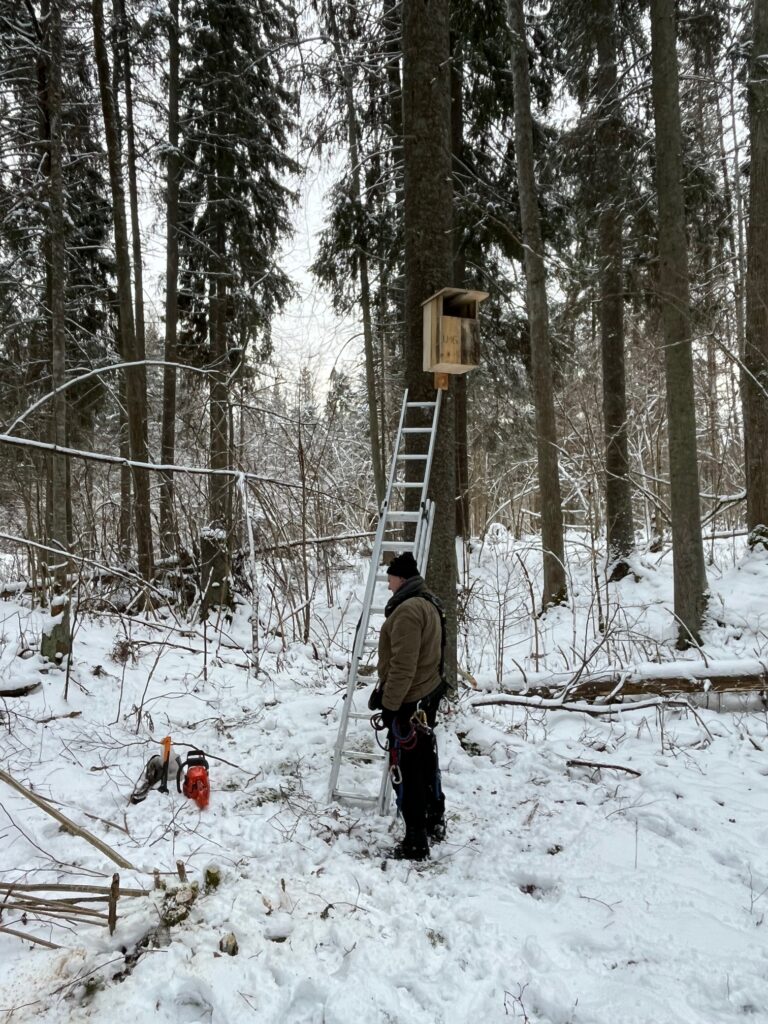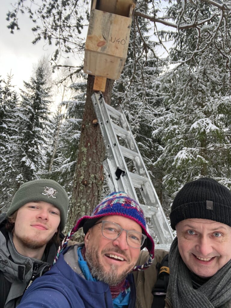 Jau devīto gadu pēc kārtas Simbaro mežos izvieto putnu mākslīgās ligzdvietas, lai noskaidrotu, kā tās kalpo, un kādas putnu sugas tos izvēlas. 2026. gada 3.janvārī pūces saņēma 7 jaunas mājvietas. Nu viņām kopā jau ir 55 ģimenes mājas! Žonglējot ar trepēm, āmuru un zāģi, dienu mežā pavadīja Edgars Lediņš, Valdis Zariņš un Helmuts Zariņš.